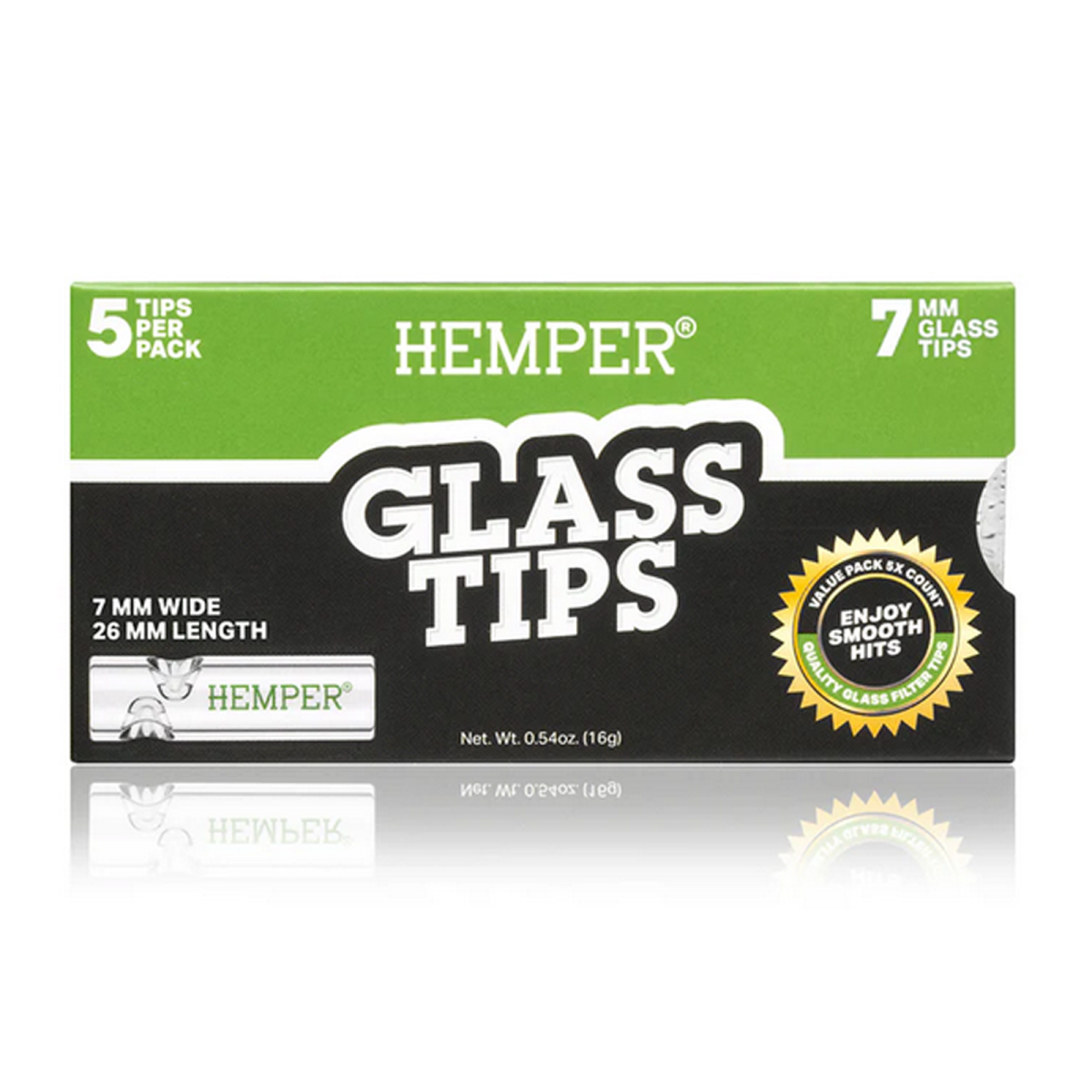 Hemper Glass Filter Tips 7 mm – 5er Pack aus hitzebeständigem Borosilikatglas. Wiederverwendbar, geschmacksneutral und leicht zu reinigen. Für kühle, sauber