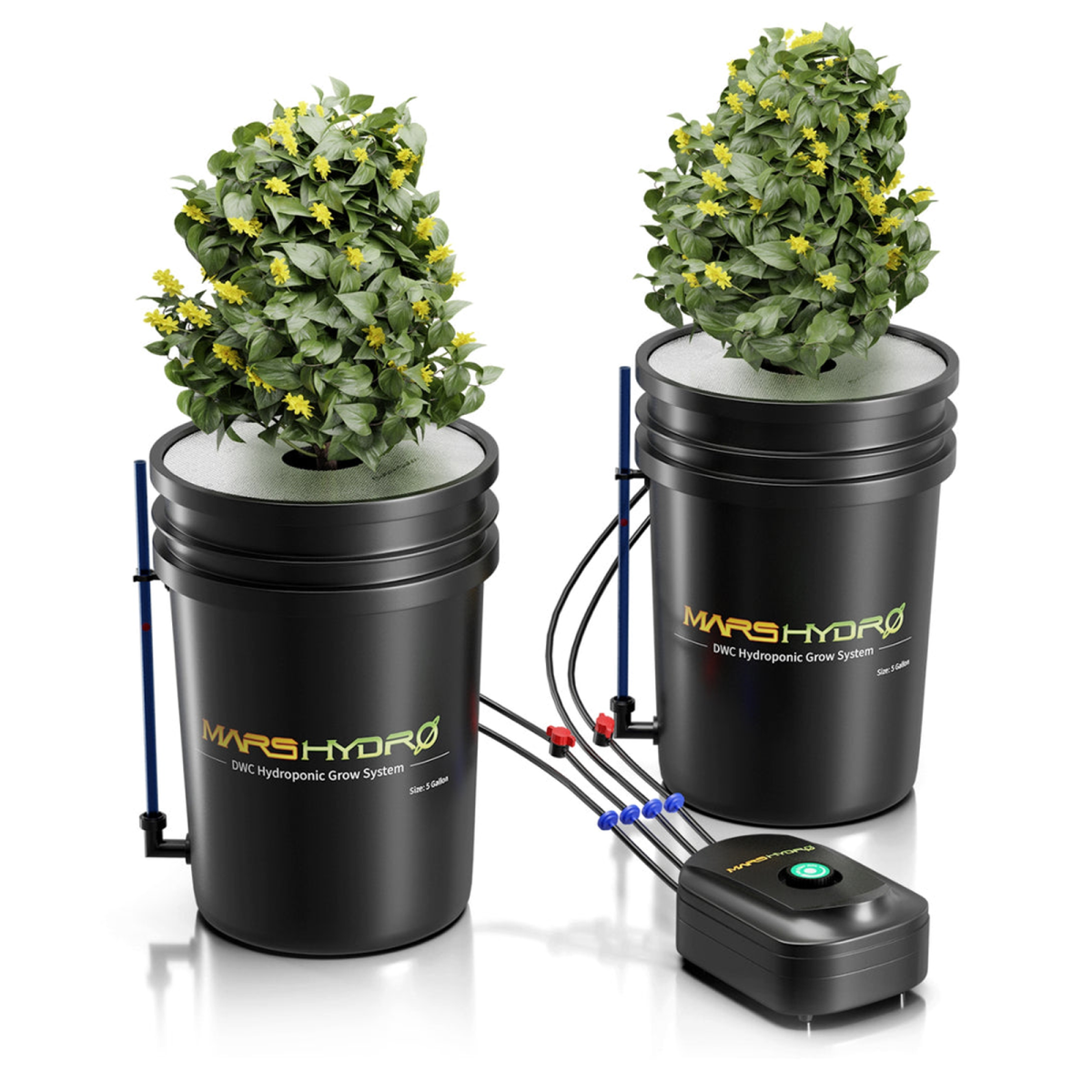Mars Hydro DWC Hydroponik-System Kit – Komplettset für erdlose Pflanzenzucht Zwei 19-Liter-Eimer mit 20 cm Pflanzkörben, Luftpumpe, Tropfring und Wasserstandsanzeige Das Mars Hydro DWC Hydroponik-System Kit ist ein hochwertiges Komplettsystem für den Einstieg in die moderne Hydroponik. Es besteht aus zwei stabilen Eimern mit je 19 Litern Fassungsvermögen, zwei 20 cm großen Pflanzkörben, einer leistungsstarken Luftpumpe mit Luftsteinen, einem Tropf-Bewässerungsring und einer praktischen Wasserstandsanzeige. Alles, was du für den sofortigen Start deiner hydroponischen Anlage brauchst. Dieses Tiefwasserkultur-System (DWC) versorgt die Pflanzenwurzeln permanent mit einer sauerstoffreichen Nährlösung. Dadurch wachsen die Pflanzen schneller, gesünder und bringen deutlich höhere Erträge als in herkömmlicher Erde. Das System ist perfekt geeignet für Kräuter, Gemüse und Zierpflanzen im Indoor-Bereich oder Gewächshaus. Die robusten Eimer bestehen aus langlebigem, lichtdichtem Kunststoff und verhindern so Algenbildung. Durch den gleichmäßigen Sauerstoffeintrag der Luftpumpe wird die Nährlösung optimal durchlüftet – das fördert das Wurzelwachstum und sorgt für stabile Nährstoffaufnahme über den gesamten Zyklus hinweg. Vorteile und Einsatzmöglichkeiten Hydroponisches Wachstum leicht gemacht Mit dem Mars Hydro DWC-System gelingt der Einstieg in die Hydroponik ganz einfach. Die Kombination aus Wasser, Sauerstoff und Nährstoffen bietet ideale Bedingungen für kräftiges Wachstum. Die konstante Belüftung und der Wasserumlauf verhindern Staunässe und Wurzelfäule. Du sparst Erde, Zeit und Wasser – und erzielst trotzdem maximale Erträge. Warum das Mars Hydro System die richtige Wahl ist Dieses System ist besonders benutzerfreundlich aufgebaut und ideal für Grower, die eine effiziente, erdlose Lösung suchen. Das Kit kommt komplett mit allen nötigen Komponenten – kein zusätzliches Zubehör erforderlich. Wichtige Suchbegriffe wie Hydroponik-System , DWC-Komplettset oder Tiefwasserkultur-Anlage sind exakt darauf abgestimmt. Technische Merkmale im Überblick 2 Eimer mit je 19 Litern Fassungsvermögen Pflanzkörbe mit 20 cm Durchmesser Leistungsstarke Luftpumpe mit Doppelausgang 2 Luftsteine zur gleichmäßigen Sauerstoffverteilung Integrierter Tropfring zur konstanten Bewässerung Wasserstandsanzeige zur einfachen Kontrolle Lichtdichtes, robustes Material – verhindert Algenwachstum Geeignet für Kräuter, Salate, Chili, Tomaten, Erdbeeren u.v.m. Für Indoor- und Gewächshausbetrieb geeignet Geringer Wartungsaufwand, einfache Reinigung Anwendung und Pflege Fülle die Eimer mit einer ausgewogenen Nährlösung, setze die Pflanzen in die Körbe und starte die Luftpumpe. Der Wasserstand sollte etwa 2–3 cm unterhalb der Korbbasis liegen. Kontrolliere regelmäßig pH- und EC-Wert und wechsle die Nährlösung alle 1–2 Wochen. Reinige das System nach jedem Zyklus, um Rückstände und Algenbildung zu vermeiden. FAQ´s 1. Wie viele Pflanzen passen in das System? In jeden Eimer passt eine größere oder zwei kleinere Pflanzen – ideal für 2–4 Pflanzen insgesamt. 2. Wie viel Strom verbraucht die Luftpumpe? Die Pumpe arbeitet effizient und verbraucht weniger als 10 W Strom. 3. Wie oft muss ich die Nährlösung wechseln? Empfohlen wird ein Wechsel alle 7–14 Tage, abhängig von Pflanzenart und Wachstum. 4. Kann ich das System im Freien nutzen? Ja, bei Temperaturen über 15 °C – jedoch vor direkter Sonneneinstrahlung schützen. 5. Ist das Set für Einsteiger geeignet? Ja, das Mars Hydro Kit ist ideal für Anfänger und Profis gleichermaßen. Fazit Das Mars Hydro DWC Hydroponik-System Kit ist ein durchdachtes Komplettpaket für den professionellen Indoor-Anbau. Mit zwei 19-Liter-Eimern, Belüftungssystem und Wasserstandsanzeige bietet es alles, was du für kräftige, gesunde Pflanzen brauchst. Einfach aufzubauen, wartungsarm und extrem effizient – perfekt für jeden, der Hydroponik smart betreiben will.