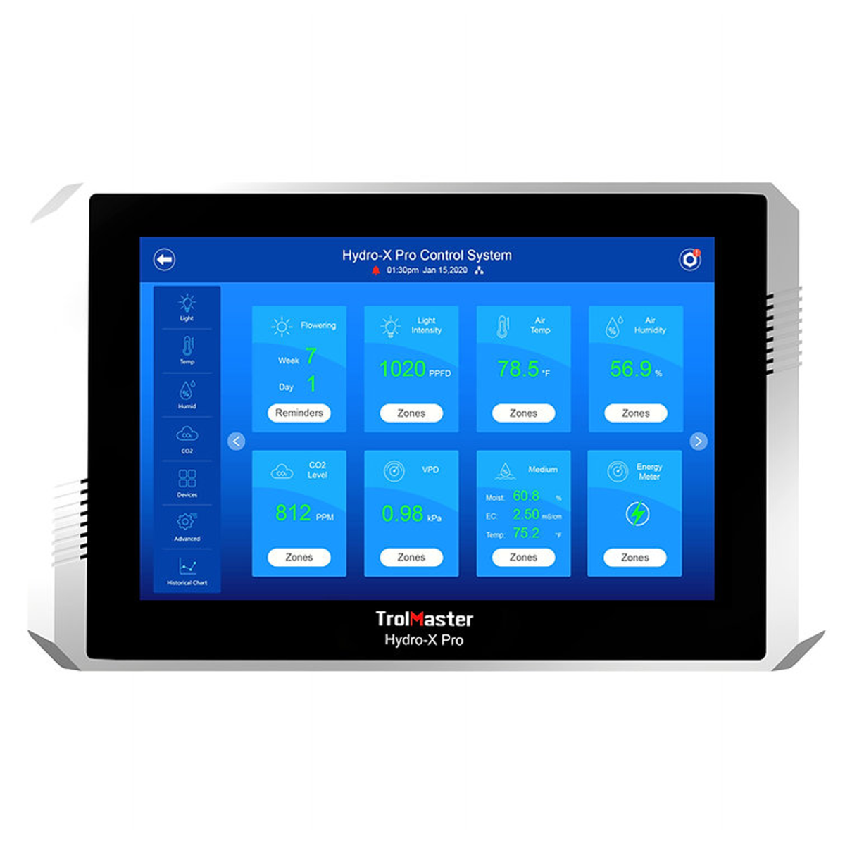 TrolMaster HCS-2 Hydro-X Pro Klimasteuerungssystem für Growräume. Präzise Kontrolle von Temperatur, Luftfeuchte, CO₂ und Licht. Profi-Technik.